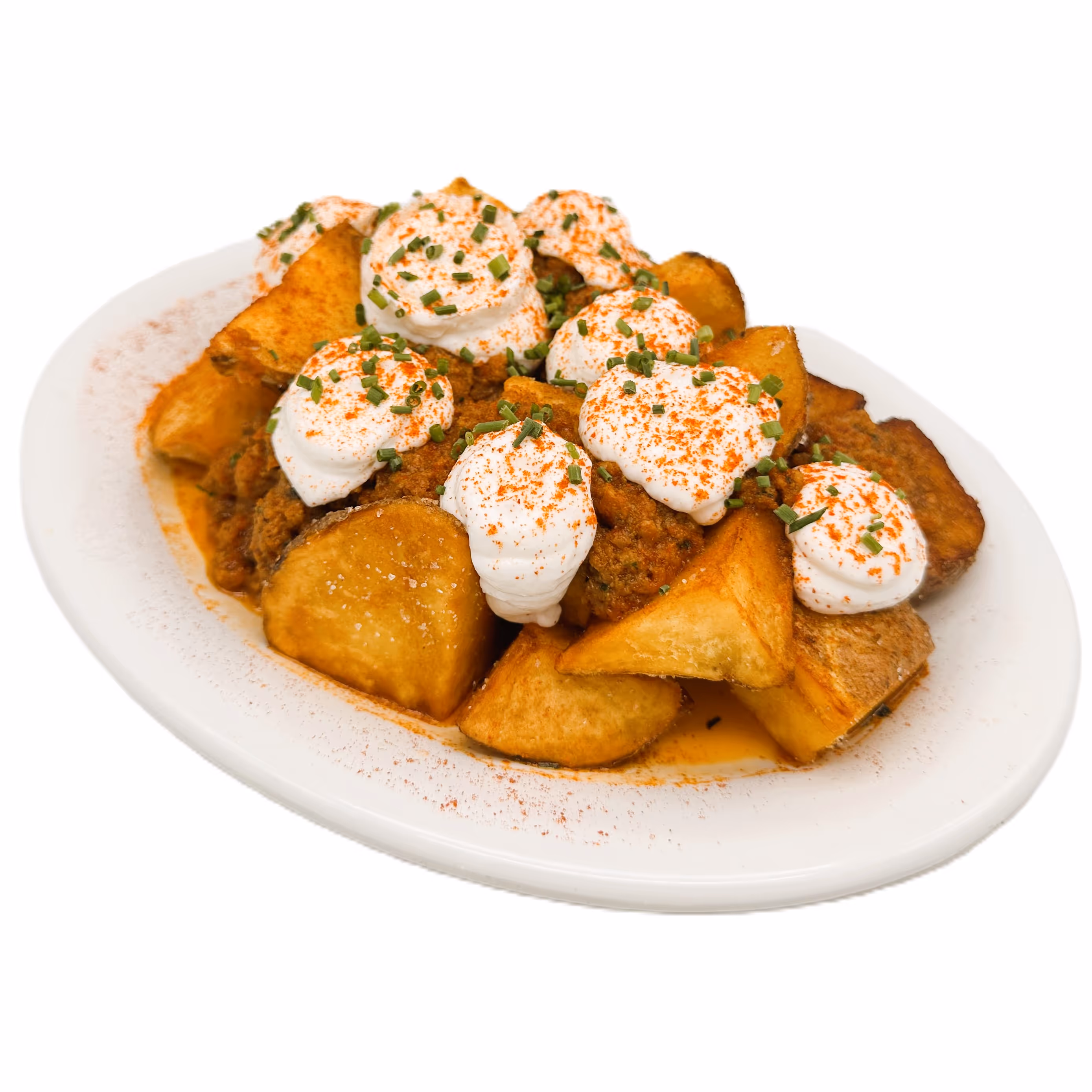 Patatas, allioli vegano y nuestra original salsa brava secreta